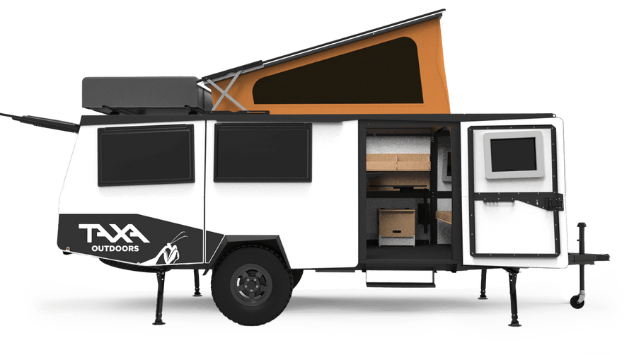Designed to open up and let the outside in, the Mantis camper connects you with nature like never before. From its spacious interiors, including ample room to sleep four adults, to its eye-catching exterior, be prepared to turn heads wherever you roam. The Mantis also comes equipped with a powerful AC and heater, so you can still adventure during the off-season.